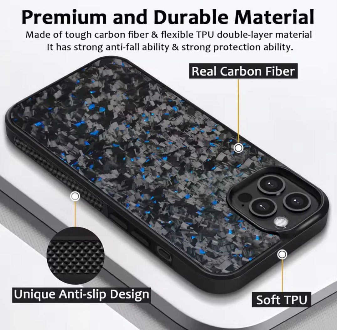 Made from authentic carbon fiber, each case is unique and crafted with the same precision as supercars. Our cases offer MagSafe compatibility and maintain your phone's signal integrity. They are carefully designed to support wireless charging and are fully compatible with all types of screen protectors. Enjoy easy access to ports and buttons with a slim, lightweight profile.